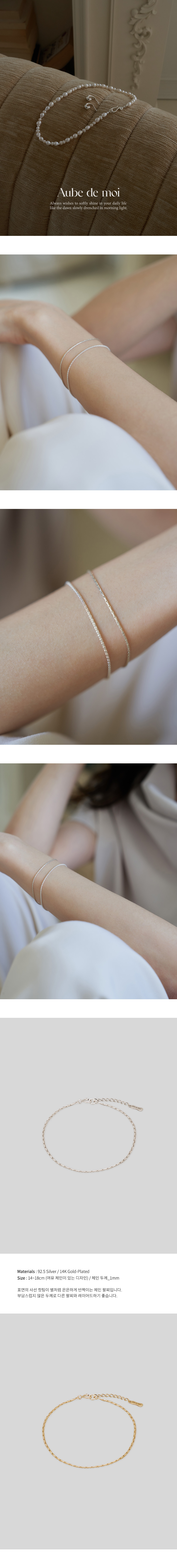 표면의 사선 컷팅이 별처럼 은은하게 반짝이는 체인 팔찌입니다.