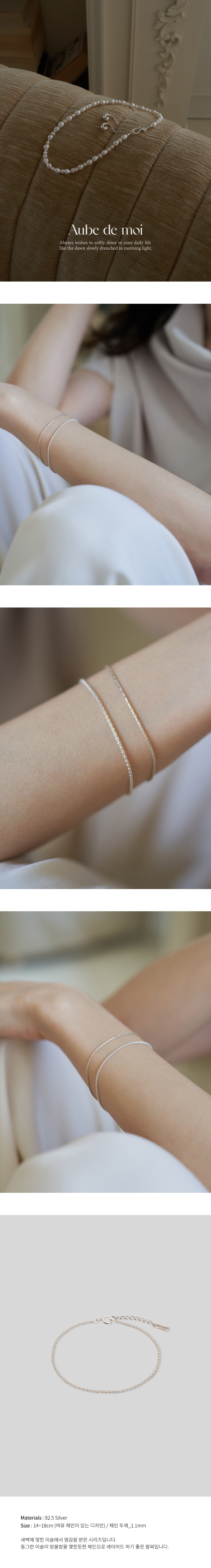 동그란 이슬이 방울방울 맺힌듯한 체인으로 레이어드 하기 좋은 팔찌입니다.