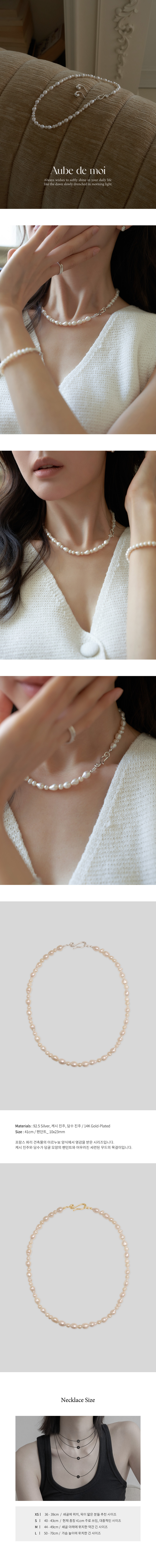 케시 진주와 담수가 덩굴 모양의 팬던트와 어우러진 세련된 무드의 목걸이입니다.