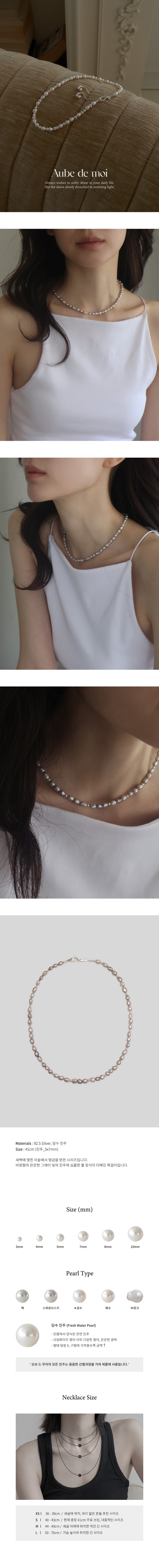 비정형의 은은한 그레이 빛의 진주에 심플한 볼 장식이 더해진 목걸이입니다.